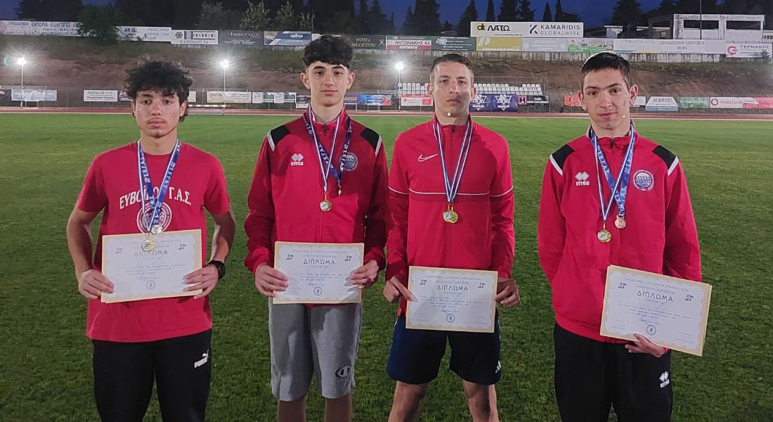 1η θέση στην σκυτάλη 4Χ80μ αγοριών με τους ΚΑΖΙΓΙΑ ΑΝΤΩΝΗ-ΣΚΟΥΡΟ ΚΩΝΣΤΑΝΤΙΝΟ-ΔΟΥΛΟ ΝΕΚΤΑΡΙΟ και ΑΝΤΩΝΙΟΥ ΛΟΥΚΑ με επίδοση 38.64’’